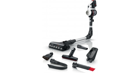 - BOSCH BCS711XXL : Blanc et noir • 1 batterie • Suceur ameublement XXL, suceur long flexible, suceur court et buse tiroir