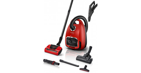 - BOSCH BGL6TPET : Rouge • 74 dB • 2 brosses • 3 accessoires • Variateur poignée • Parquet • Animaux