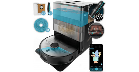 Doté de 2 serpillères, qui agissent par rotations, auto-nettoyables sur la base, avec auto-élévation, avec extension automatique pour une serpillère "SpinXtend"