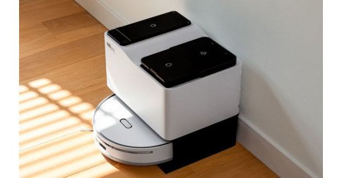 Recharge de la batterie sur la base avec retour automatique de l'aspirateur