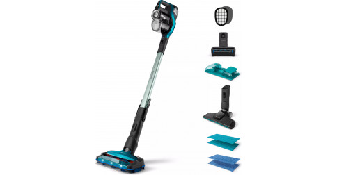 Aspirateurs à main/balais Philips FC69 SpeedPro Max Aqua 2019- PHILIPS FC6902/01 : Bleu pétrole • 3 brosses (dont 1 spéciale animaux) • Autonomie : 55 mn