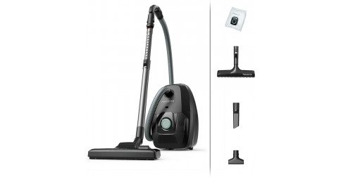 Noir et vert • 2 brosses (dont parquet) • Suceur fente et Suceur ameublement plat
