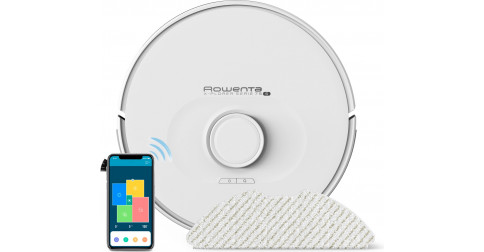 - ROWENTA RR8587WH : Blanc • 2 serpillères grises • Station de vidage automatique