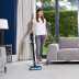 Bleu • Recharge par base ou jack • Suceur plat 30 cm et brosse anti-allergène • 2 batteries • Animaux