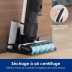 Système de nettoyage principal : Doté d'une brosse motorisée à rouleau serpillère, auto-nettoyable pendant l'utilisation et sur la base, tournant à 450 tr/min