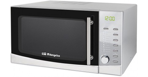 Appareil : four à micro-ondes ORBEGOZO MIG 3420 Mode d'installation : pose libre Fonctions : minuterie, 9 menus automatiques Modes de cuisson : micro-ondes, gril Puissance micro-ondes : 1000 W Gril : 1300 W Volume utile : 34 l Couleur de la porte : inox Couleur du bandeau : inox Couleur du châssis : inox