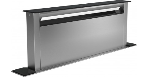 Cette hotte s'intègre au plan de travail, elle est proche des foyers