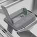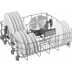 Panier inférieur avec des picots rabattables, une poignée d'ouverture et un panier à couverts déplaçable.