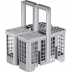 Panier inférieur avec des picots rabattables, une poignée d'ouverture et un panier à couverts.
