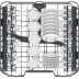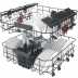 Panier inférieur avec des picots rabattables, une poignée d'ouverture et un panier à couverts déplaçable.