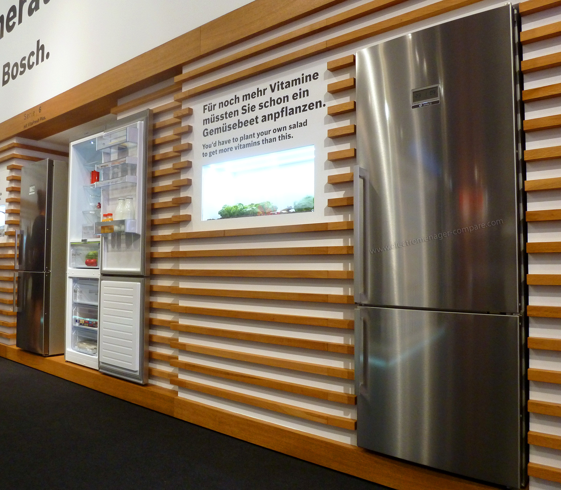 2), de nouveaux réfrigérateurs seront dévoilés, notamment les trois modèles sélectionnés par le jury de la marque à l'occasion du concours organisé précédemment pour que les internautes configurent eux-même le réfrigérateur de leur souhait. Une nouvelle gamme d'appareils BluPerformance sera également présentée, la marque indique que leur efficacité énergétique a notamment été optimisée, ainsi que leur finition.