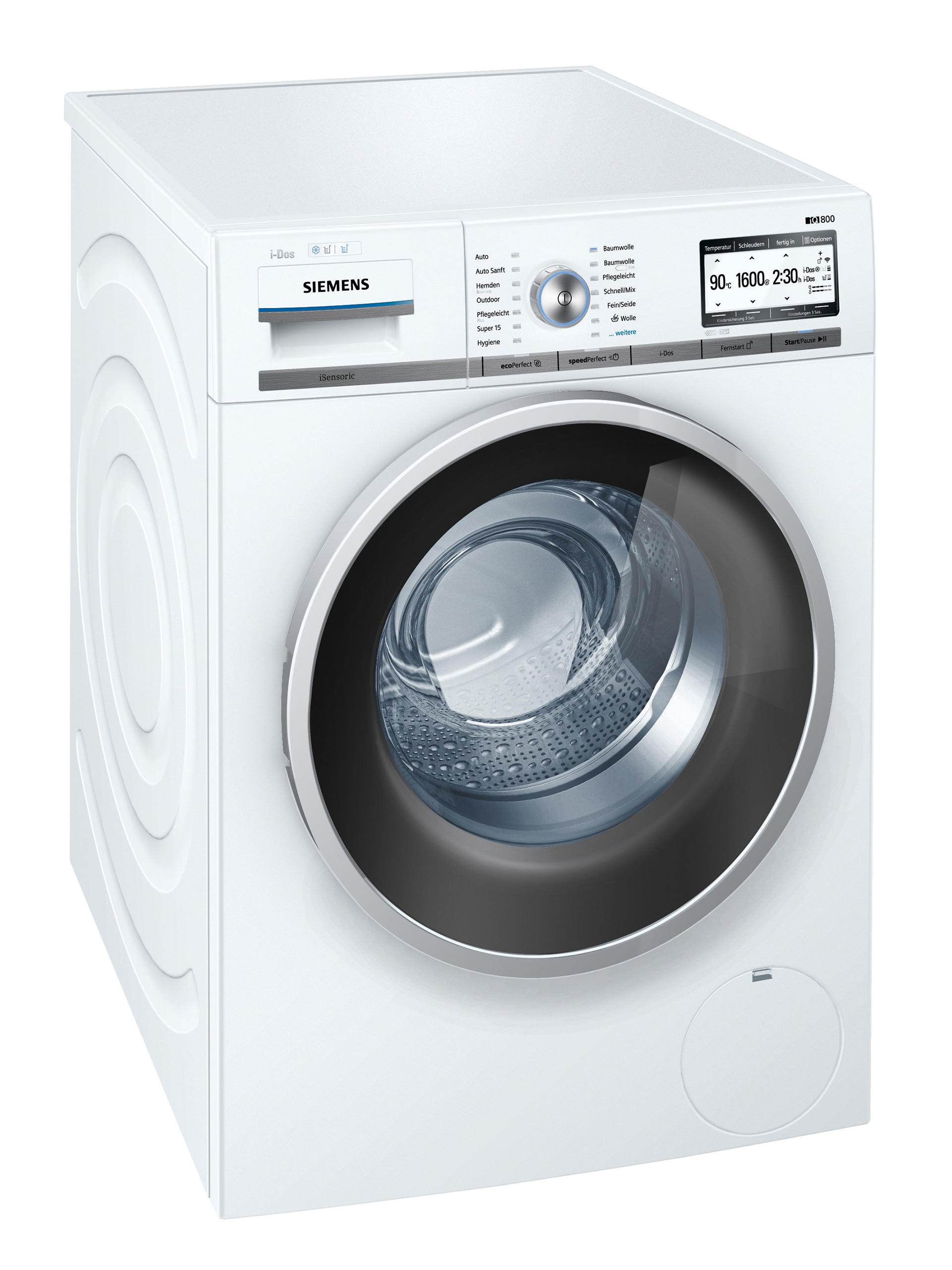 Le lave linge IQ800 de Siemens peut être piloté au travers d'une application mobile Home Connect, permettant à l'utilisateur d'être informé sur l'état de la machine à laver, à distance, et d'interagir avec celle-ci. Equipé de la technologie iSensoric, ce lave linge "intelligent" est capable d'ajuster tout seul ses paramètres en fonction du linge à laver grâce à divers capteurs. Sa fonction Easystart permet par ailleurs de proposer aux utilisateurs des suggestions de programmes qu'ils pourront ensuite sélectionner et lancer, directement depuis leur tablette ou smartphone. De classe A+++ cette machine à laver est peu énergivore, notamment grâce à sa technologie FlexStart permettant par exemple de programmer le départ des lavages en heures creuses.
