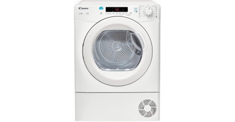 Sèche-linges Candy 10 kg CSC10D- CANDY CSC10DCG-47 : Hublot vitré • Programmateur avec texte FR • Blanc et chrome