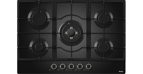 - AMICA AG6650N : Table 75 cm • 5 foyers (dont un Wok) • Commandes cylindriques noires