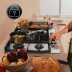Table équipée de 5 foyers à gaz.