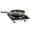 De belles finitions tout en métal pour cette petite plaque fabriquée par une société française ! Elle est très compacte, très stable mais très lourde (qualité des matériaux). Fonctionne parfaitement, peut s'encastrer dans un meuble ou se poser grâce aux pieds fournis. Thermostat qui fonctionne bien. On remarque un détail intéressant : le câble secteur est dans un matériau résistant à la chaleur, ce type de câble de sécurité, beaucoup plus cher n'est hélas pas tout le temps monté sur les plaques pas chères.