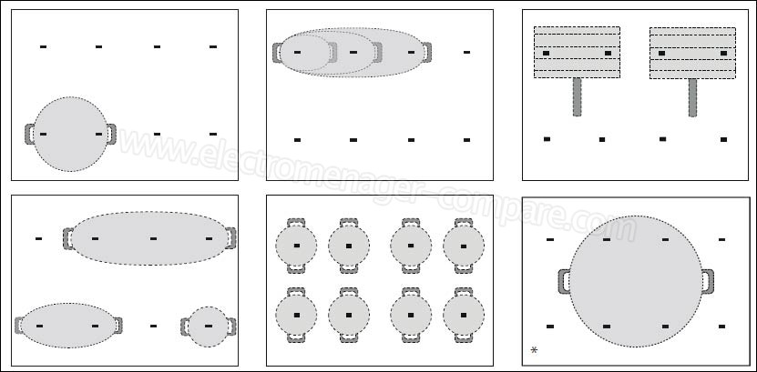 Cette table de cuisson "FlexPro" est totalement flexible : 8 foyers, utilisables simultanément qui permettent de poser des récipients de tailles variées à divers endroits de la table.