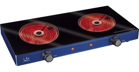 Appareil : table JATA V142 Mode d'installation : pose libre Commandes : manettes Foyers : 2 radiants Sécurité : anti-surchauffe Puissance totale : 2400 W Interface utilisateur : voyants lumineux de fonctionnement Alimentation : 230 V Couleur de la surface : noir Panneau de commandes : bleu