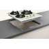 Table équipée de 3 foyers à gaz.