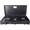 Table équipée de 3 foyers à gaz.