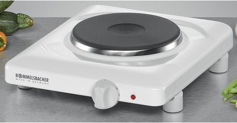 Appareil : plaque de cuisson électrique ROMMELSBACHER THL 1097 Type de pose : pose libre Commande : manette Type de foyers : 1 foyer électrique (145 mm) Puissance : 1000 W Sécurité : sécurité anti-surchauffe Dimensions (h x l x p) : 70 x 275 x 245 mm Couleur : blanc